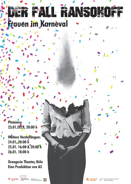 Prinz, Bauer, Jungfrau! Prinzessin, Bäuerin... Halt! Mit „Der Fall Ransohoff– Frauen im Karneval“ bringt das Kollektiv „A3“ eine Stückentwicklung auf die Bühne, die Vergangenheit und Gegenwart des Karnevals miteinander verknüpft und dessen politische Bedeutung neu beleuchtet. Ausgangspunkt ist die Geschichte von Gerti Ransohoff, einer der ersten Büttenrednerinnen im Kölner Karneval: Verheiratet mit einem jüdischen Kaufmann, endet ihre Karriere 1932 tragisch. Das Stück erzählt jedoch nicht nur die Geschichte Gerti Ransohoffs, sondern nutzt sie als Ausgangspunkt für eine kritische Auseinandersetzung mit patriarchalen Strukturen, überholten Rollenklischees und erneut aufkommenden rassistischen Strömungen in unserer Gesellschaft. Dabei entworfen wird das Traumbild eines toleranten Karnevals mit Zugänglichkeit und Teilhabe für alle. Auf Gertis Spuren forscht „A3“ nach dem ungenutzten Potenzial dieser ursprünglich als Plattform des politischen Widerstands gedachten Veranstaltung, dem Karneval und den blinden Flecken, die sich im Konfettiregen oft verstecken.