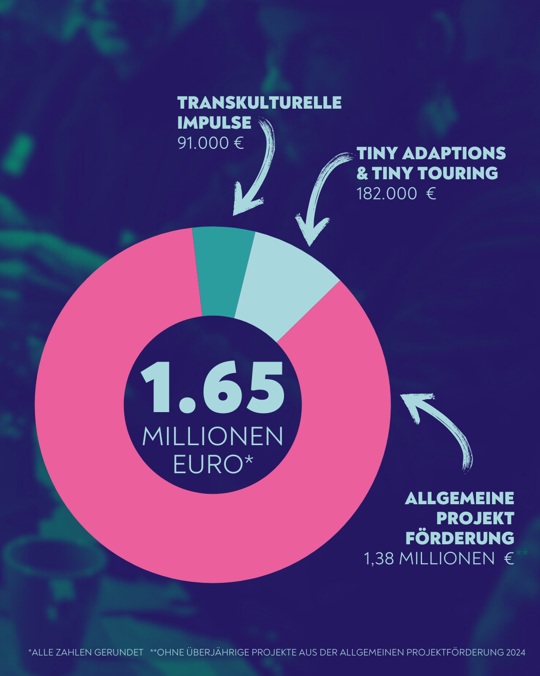 Neben der Allgemeinen Projektförderung konnten auch die Programme Transkulturelle Impulse und Raus ins Land in 2025 erneut ausgeschrieben werden. Mit den Transkulturellen Impulsen erhielten diskriminierungskritische, rassismuskritische, diversitätsorientierte Projekte Projekte Unterstützung. Über Raus ins Land wurden die Programme "Tiny Adaptions" und "Tiny Touring" ausgeschrieben. Sie zielen darauf ab, mehr Publikum in ländlichen Räumen des Landes zu erreichen.